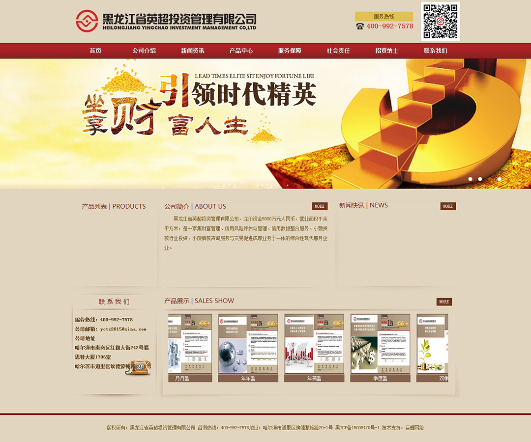 黑龍江省英超投資管理有限公司,注冊資金5000萬元人民幣,營業(yè)面積千余平方米,是一家集財富管理、信用風(fēng)險評估與管理、信用數(shù)據(jù)整合服務(wù)、小額貸款行業(yè)投資、小微借款咨詢服務(wù)與交易促進成等業(yè)務(wù)于一體的綜合性現(xiàn)代服務(wù)企業(yè)。